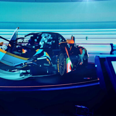 We knew we wanted to use the McLaren Thought Leadership Centre, a magnificent, futuristic-looking, circular room with tiered seating radiating from the centre. We wanted to place a full size car in the centre of the room but unfortunately couldn’t get one in. So we did the next best thing, created one in 3D.