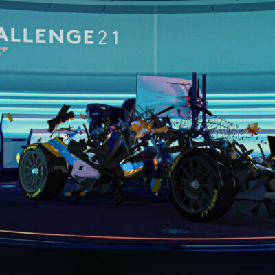 Once we’d filmed Lando interacting with the car, driving and playing the game we took the footage and built a McLaren 720 in 3D which assembles as the countdown to the game begins. We then updated the livery for all cars within the game so that when played back, Lando was almost driving the virtual lap in game.